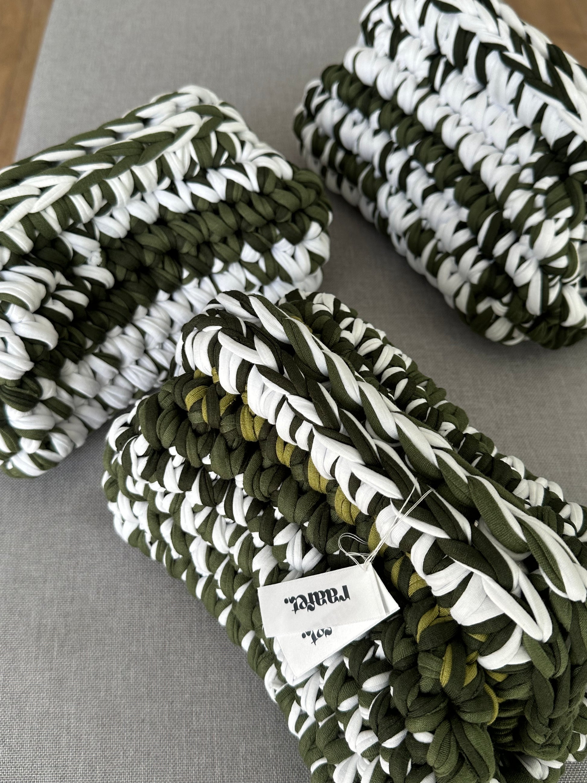 Crocheté à la main en fil t-shirt recyclé, il associe style, authenticité et durabilité. Sa texture singulière et son design moderne en font un sac unique, pensé pour celles qui aiment se démarquer avec raffinement.